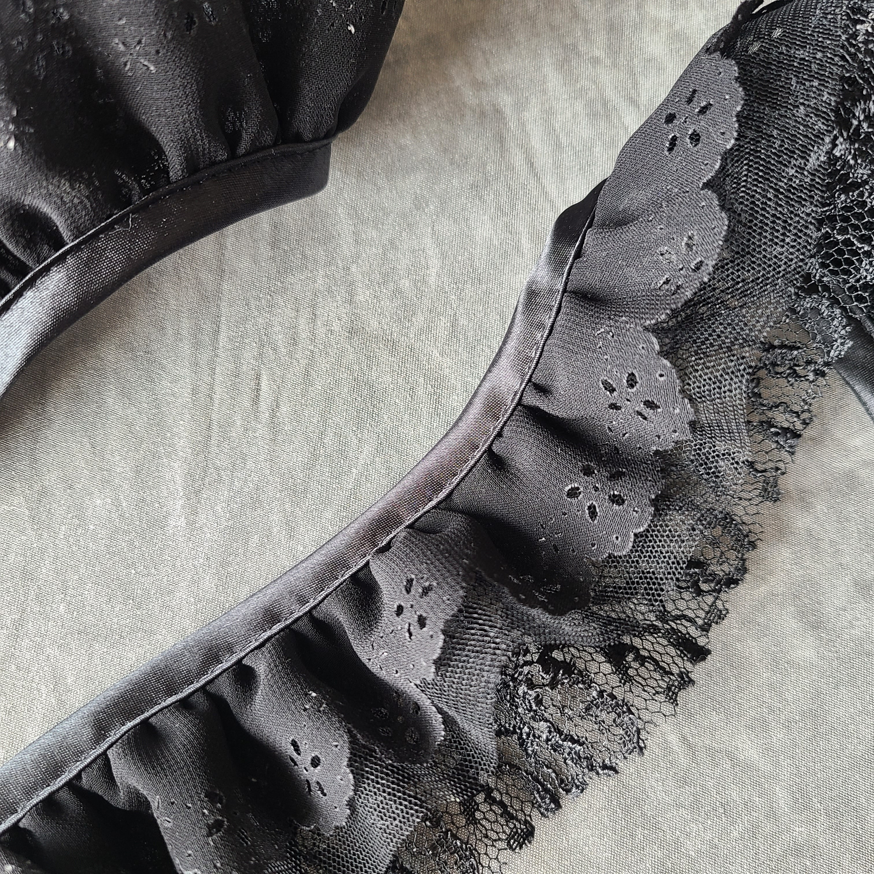 シフォン・チュール・レースの3段フリルをサテンでパイピングしたドレッシーなデコサス。