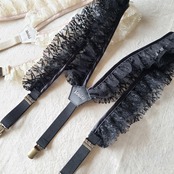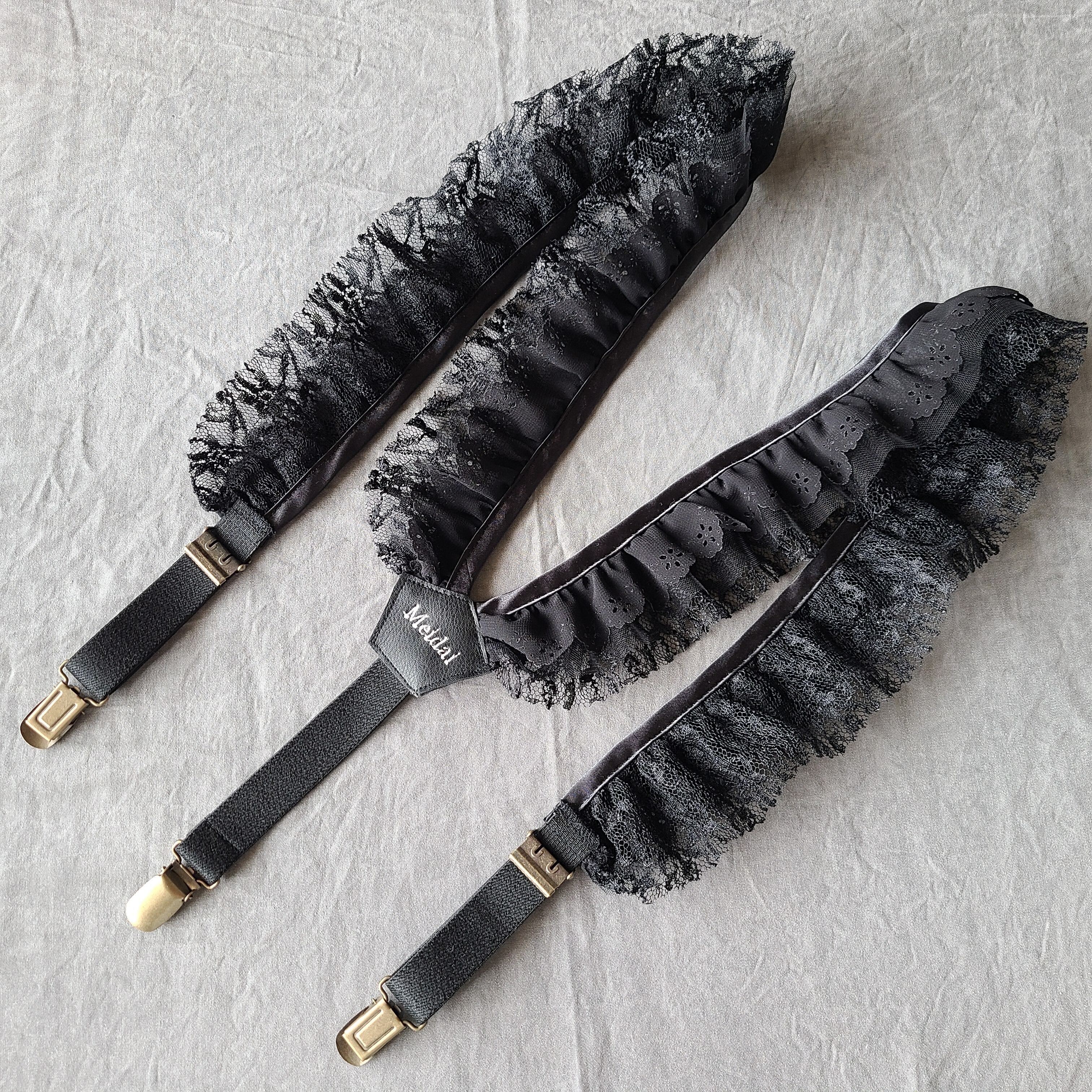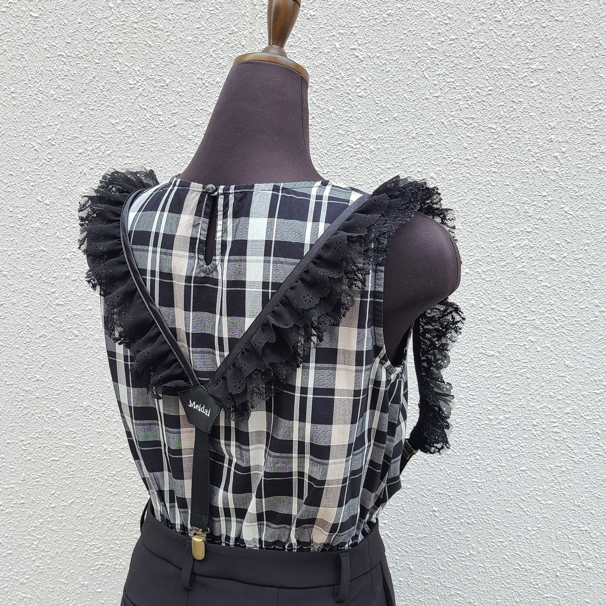 3種類の布を使用した贅沢なデコレーションサスペンダーです。